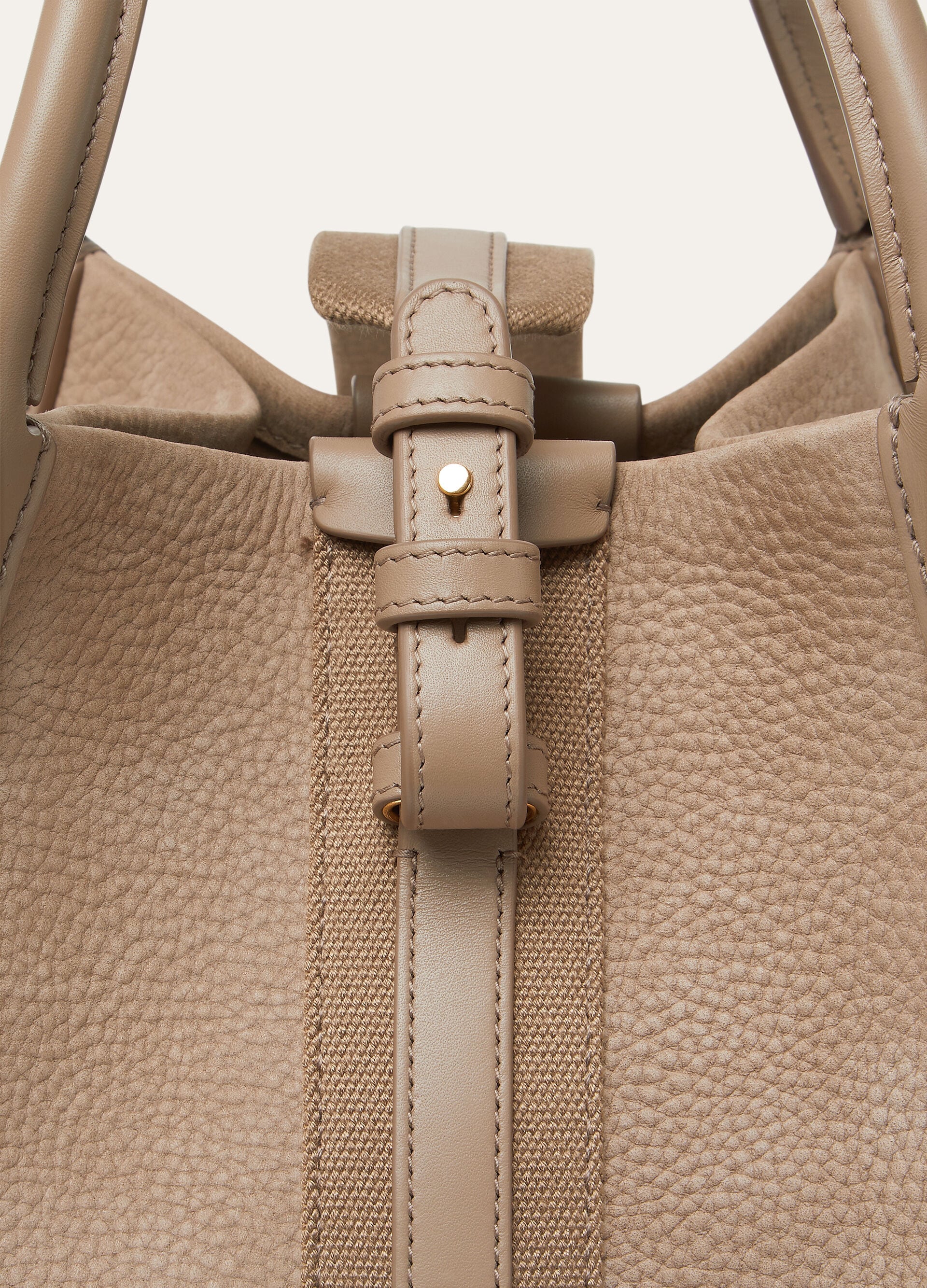 The Bale, a sophisticated bucket bag in small size with handstitched handles, inspired by Loro Piana’s textile heritage. Its silhouette, touch, and feel recall the cashmere bales, large bundles of the raw precious material. With a seamless design and unique lightness, the Bale bag is a celebration of supple softness and encapsulates the savoir-faire of the Maison. Effortless and casual, it is ideal for carrying all daily essentials with ease. The bag can be carried by hand or crossbody thanks to its removable strap. Beautifully crafted in soft, silky calfskin with a unique grained finish.